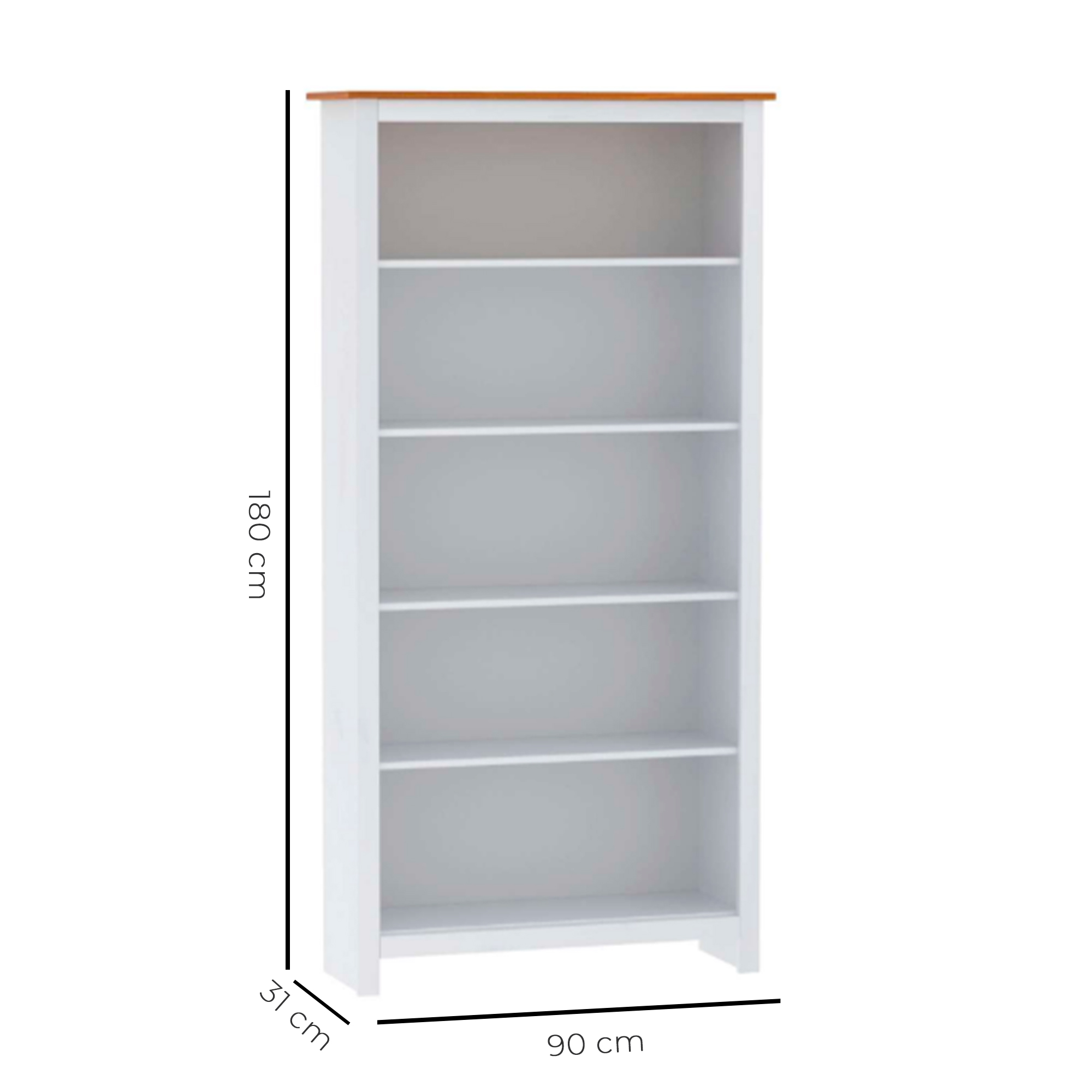 Fabricada en madera de pino, su estructura robusta garantiza durabilidad y resistencia. Los cuatro estantes ofrecen un amplio espacio para almacenar libros, decoraciones y otros objetos, permitiendo mantener el orden y la organización en su entorno. El panel trasero añade un toque de elegancia y estabilidad, haciendo de esta estantería un mueble atractivo y práctico.