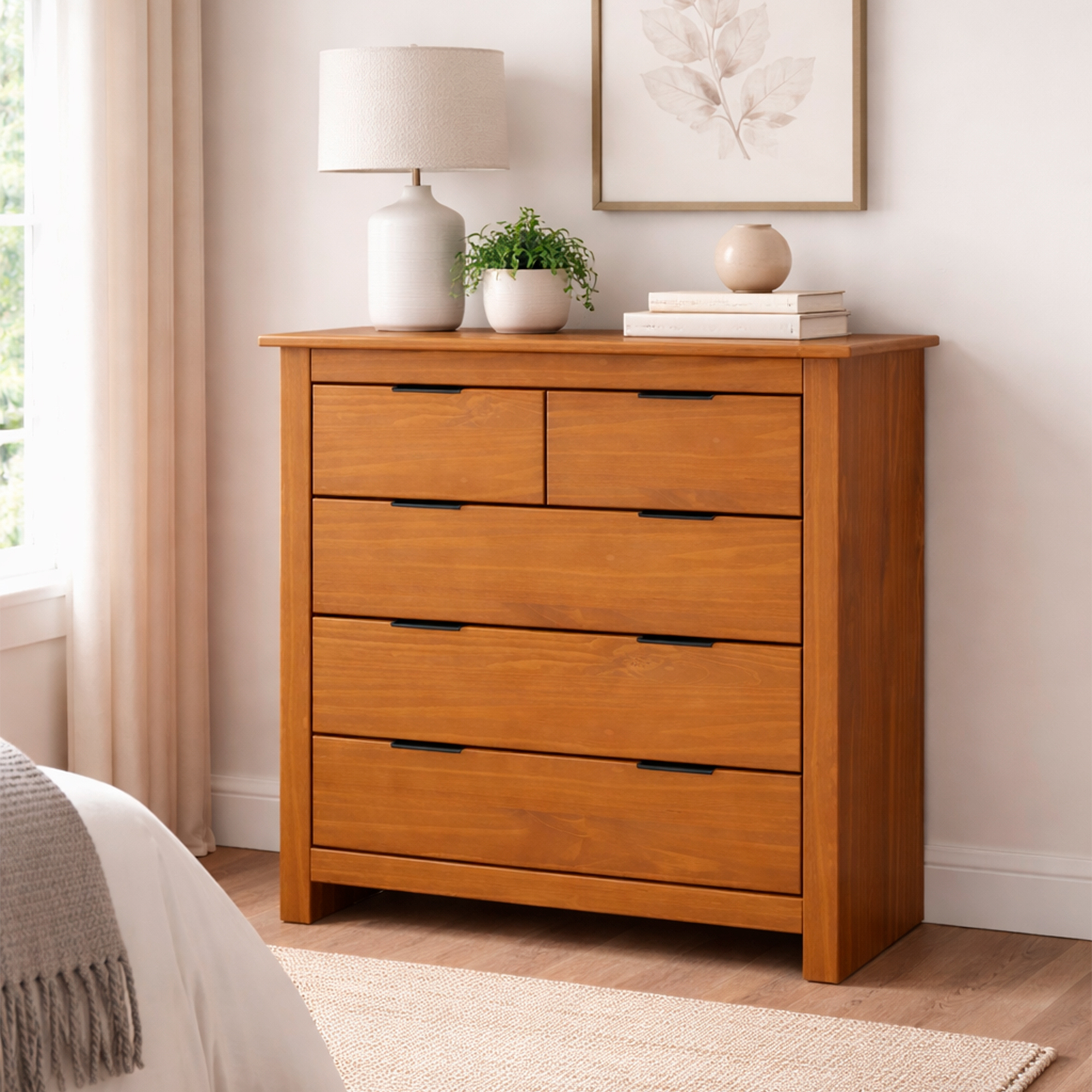 Cómoda en Madera de Pino 5 cajones Boston