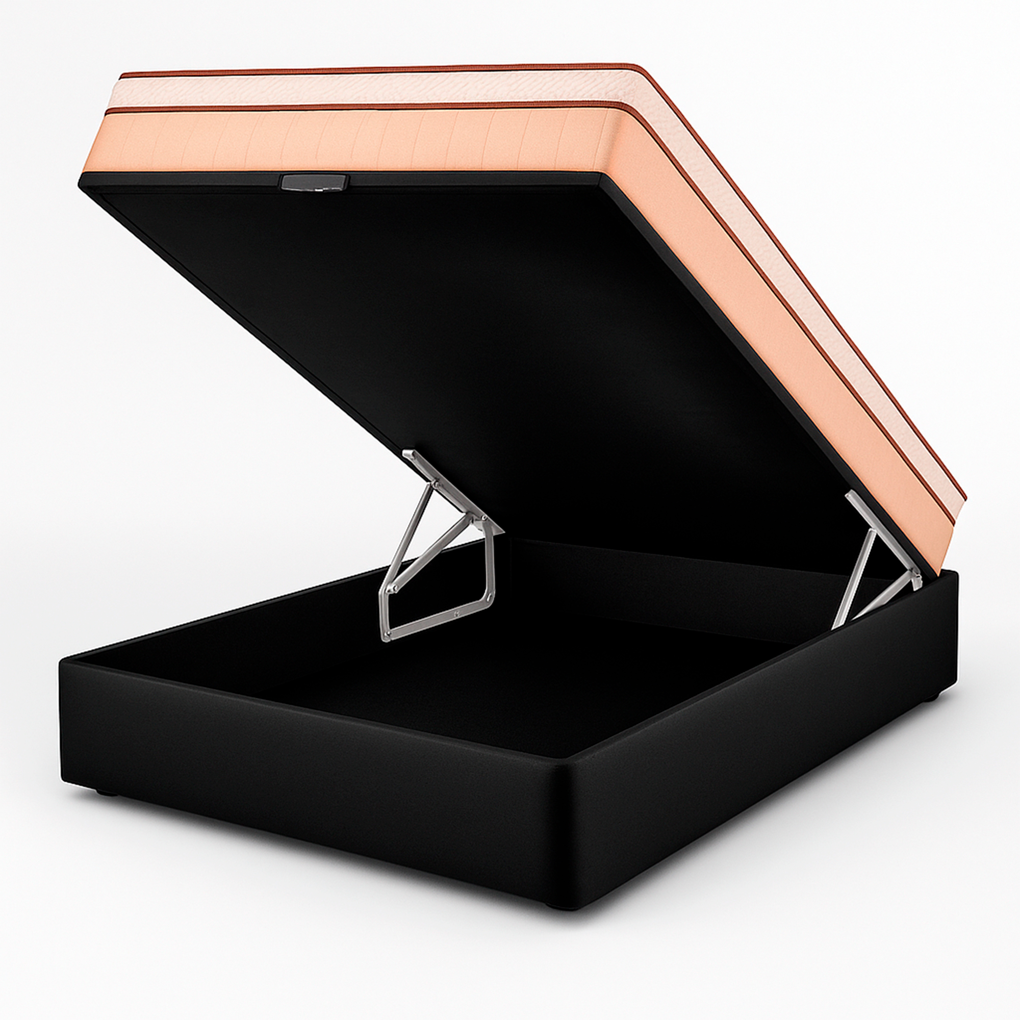 Descansá mejor con el Sommier High Steel, que incluye colchón ortopédico de 28 cm de altura y box baúl con sistema hidráulico. Ideal para quienes buscan firmeza, durabilidad y espacio de almacenamiento extra. Envíos a todo el país.